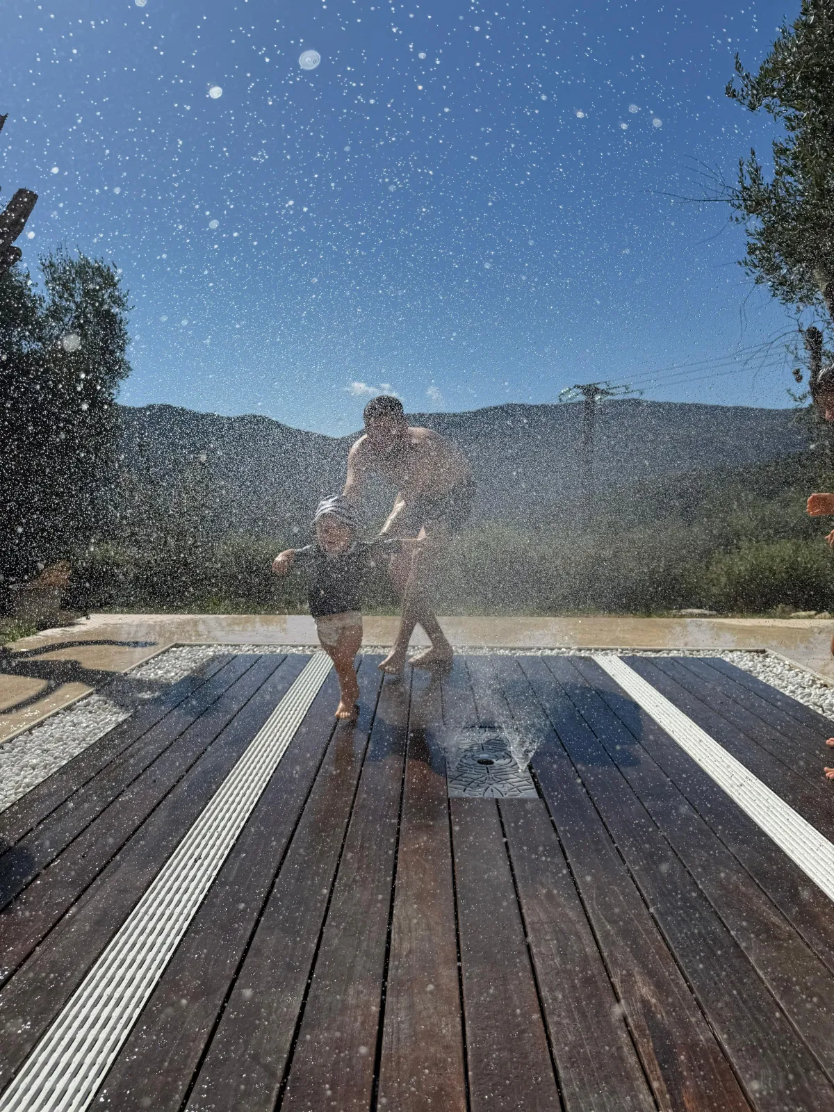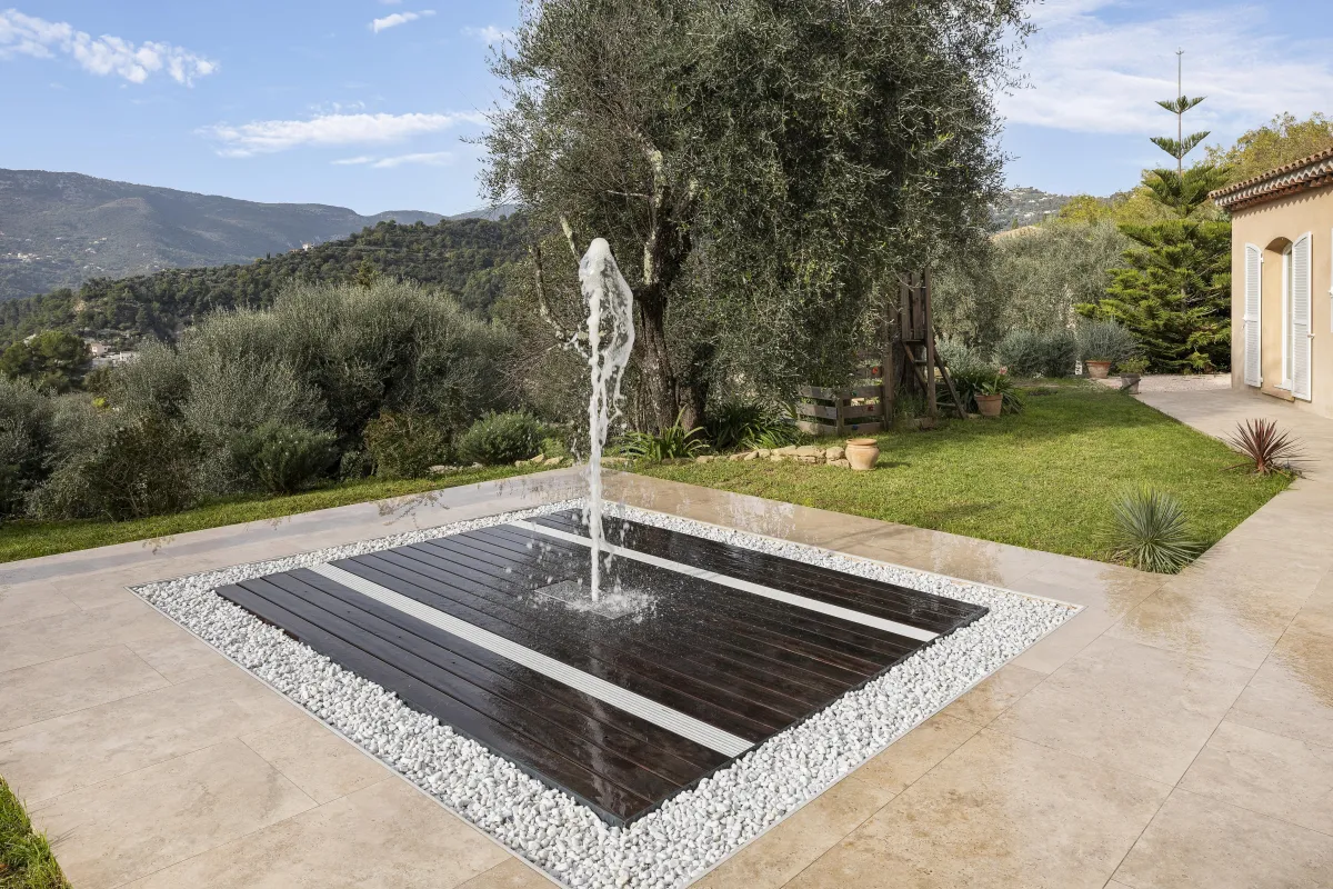 Une fois les jets désactivés, le système est invisible : le plancher redevient une terrasse classique, totalement sécurisée.